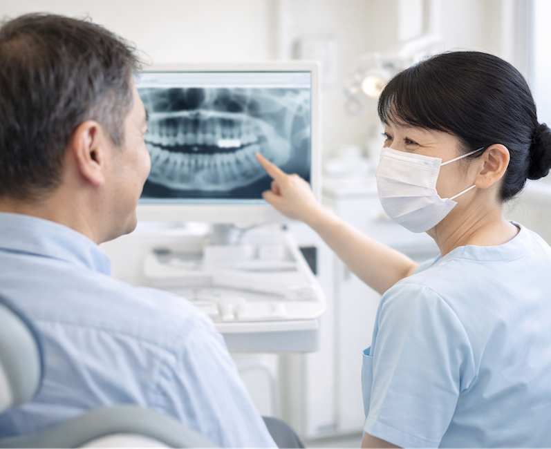 患者様が安心して治療に臨めるよう、事前にしっかりとカウンセリングを行います。まずは患者様の症状やご希望をうかがい、モニターや模型を用いながら、専門用語は使わずにわかりやすくご説明することを心がけています。ご理解・ご納得いただいてから治療を始めますので、ご不明な点がありましたら遠慮なくお声がけください。
