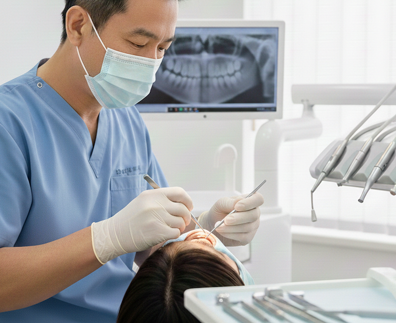 患者様が安心して治療に臨めるよう、事前にしっかりとカウンセリングを行います。まずは患者様の症状やご希望をうかがい、モニターや模型を用いながら、専門用語は使わずにわかりやすくご説明することを心がけています。ご理解・ご納得いただいてから治療を始めますので、ご不明な点がありましたら遠慮なくお声がけください。